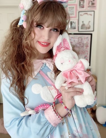 Nari (she/her) is the Social Media Manager for Rosé Forêt. She has been wearing lolita fashion since 2012. Nari wears sweet lolita with a preference for sax, stars, and animal motifs. Besides wearing lolita, Nari's other hobbies include cryptozoology, drawing, resin crafting, and more. She also enjoys collecting miniatures, vintage toys, animal bones, e g g s, and azone dolls.